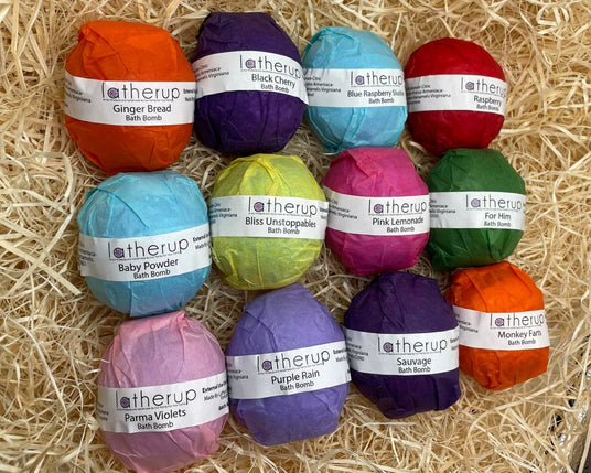 Choose any 12 of our 4oz bath bombs with over 65 scents to choose from with more being added every month.